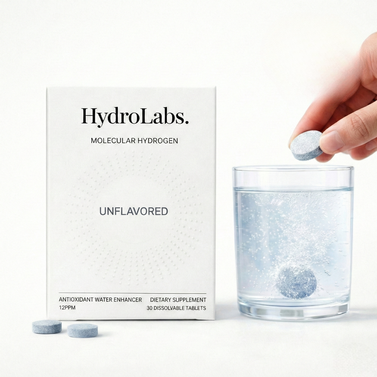 Forget bottles that lose hydrogen concentration before you take a sip. HydroLabs tablets generate molecular hydrogen directly in your glass — at maximum potency, right when you drink it. One tablet. 12–16 oz of spring water. Done. It doesn't get more effective or more straightforward than this.
